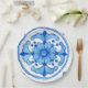 Paper party plates with Sicilian style ceramic tile design in shades of blue. Designed by Alan Skyrme.