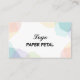 A clean and minimalist business card for "Paper Petal" featuring soft, pastel-coloured abstract shapes framing a central white space for a logo and company name, with basic contact icons.