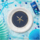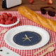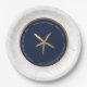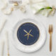 This elegant and modern baby shower paper plate features an illustration of starfish and sand dollars over a white background. In the foreground is a navy blue circle with a gold (simulated foil) starfish in the centre. The text around the edge can be customised to your liking. A beautiful and classy way to complement a beach or nautical theme shower.