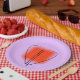 This Mod Heart 9” Paper Plate also comes in 7” plates, and is sold in sets of, 8, 16, 24, 32, 40, 80, and 160. Also available, matching luncheon and cocktail napkins (sold in sets of 50), cloth table runner and cloth napkins, and mugs. Is part of my The Mod Heart Love Collection.