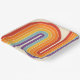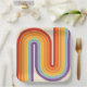 This artwork channels a retro graphic spirit, forming the letter‑like curve with parallel bands of red, orange, yellow, light blue, teal, and purple. The layered arcs flow in harmony, evoking the bold optimism of 1970s design. Set against a soft beige background, the vibrant rainbow palette stands out with clarity and rhythm. The composition balances simplicity and dynamism, creating a timeless visual that feels both nostalgic and modern.