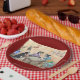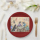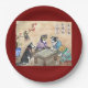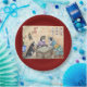 Original Watercolor of Mahjong Dogs on a deep red paper plate