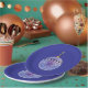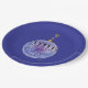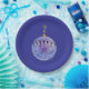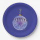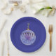 Holiday ornament in blue. Ink drawing of a round tree decoration with "Peace on Earth" beneath 3D looking arches that support the "roof" of the orb. Inside text may be changed. Background of blue. Original artwork by John Alexander Muir.