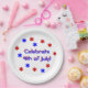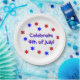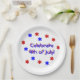 Text shows "Celebrate 4th of July!" in red, white, and blue with blue and red stars bursting in the background.