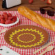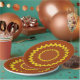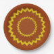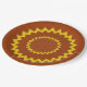 Concentric circles in zig-zag line are spaced from centre to edge of the plate. Pattern is in yellow/gold colour, background in brown. Change the look by customising the background colour.