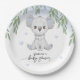Paper Plate for baby shower, decorated with a cute illustration of a koala and eucolyptus leaves.