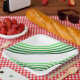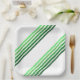 Green lines in varying five shades of green. Dark to light, bottom to top. Two Sets of stripes are placed diagonally from top to bottom of mug.
