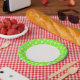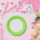 Green dots cover the rim of plate. The three dimensional dots are replicated multiple times against a pale green background. Centre of plate is white. ***Part of coordinated set - BKM1T.