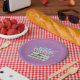 Paper Plate in Purple with Flowers in Container