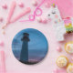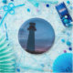paper plate lighthouse photo in shades of blue. Title: "The guide 2" Magdalen Islands, Quebec, Canada, Marie-Ève LaBadie Photographer