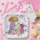 A heartwarming bond between a child and her doll is present in this play date paper party plate. Have the children bring their favourite doll to a play date and serve treats on these sweet plates. These are great for birthday parties too.