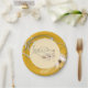 Party paper plate shown in a lovely champagne and mellow yellow colour with a love swans print design.