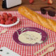 Party paper plate shown in a lovely champagne and cassis colour with a love swans print design.