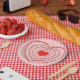 Heart with concentric outlines. For love, and/or a healthy heart. This plate shows multiple red wire-frame heart shapes gradually increasing ins size, behind a three dimensional red heart in the centre. ***Part of coordinated set - BKM1y.