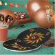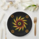 Pinwheel fireworks. Large yellow and red pinwheel centred on a black background. Four smaller pinwheels circle about the edge of plate. Change look by altering background colour. ***Part of coordinated set - BKM1f.