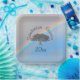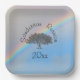 Family tree in centre with curved text "Sanderson Reunion" at top and year at bottom (personalise with your name and event date). Background is blue and grey sky with rainbow stretching from corner to corner behind the tree and text.