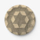 Quilt block in beige and grey "castle" pattern. The central "castle" is a grey star shape, surrounded by the "6 sided wall" with the "watch towers" extending out from the middle of the walls. ******Part of set bkmAN1a.