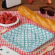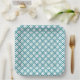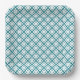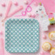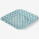 Diamonds of three sizes and three shades of chosen background colour are interwoven. Two small squares: one thick (lightest shade), one thin (medium shade) are alternately interwoven above and below the large dark square. Default background colour is sea green. Choose a background colour that coordinates with your decor.