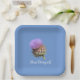 Purple thistle in bloom sits in centre of plate. Close up image shows pollen picked out by the sunlight. Great for family with Scottish ancestry. Personalise with name at the bottom.