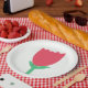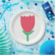 These paper plates are ready for your next casual event. They are each designed with a large red tulip.