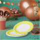 Yellow dots on the rim of plate. The three dimensional yellow dot is replicated multiple times against a very pale yellow background. Centre of plate is white. ***Part of coordinated set - BKM1Q.