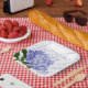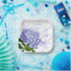 Party paper plates shown in the white dessert size with a art print of a lovely single hydrangea design.