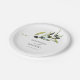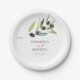 Elevate your event with these elegant olive paper plates, featuring a minimalist watercolor greenery design. The simple yet sophisticated botanical pattern in shades of green is perfect for rustic weddings and bridal showers. The trendy typography showcases the bride and groom's names adding a touch of elegance to your celebration. Personalise with your custom greeting, names, and wedding date using the template fields provided.