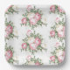 Party paper plates is shown in white with a lovely vintage pink rose print.