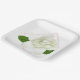 Party paper plate is shown in white with a art print of a lovely gardenia flower.