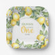 Lemon citrus 1st birthday Paper Plates, painted in soft pastel colours in a watercolor style.