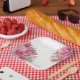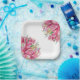 Party paper plate is shown in with a art print of lovely pink lilies.