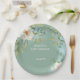 Elegant and chic paper plates. Border with eucalyptus and white flower with silver sage background. Bundle up with matching stationery and paper goods. Invitations, napkins, thank you cards, invitation. See Silver Sage Eucalyptus collection for more.