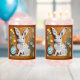 Playful and unique paper rabbit with pocket watch soda glass, fun conversational piece for soda party or friendly gathering.