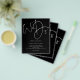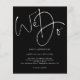 A great value PAPER (not card) alternative WITHOUT ENVELOPES at SMALLER size 4.5” x 5.6” and at a budget price. (Standard A6 envelopes are the nearest size to fit) Paper Script We Do Black Wedding Invitation. A white typography on stylish black design. Stylish set script We Do takes centre stage at the top.The rest of the text you can easily personalise. Text and background colours can be changed if you wish to better suit your wedding theme via the customise further option.