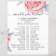 Paper Sheet game "would she rather" for a baby shower features adorable watercolor peonies, soft pink flowers and emerald leaves.