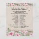 Game "Would She Rather? TRY TO MATCH YOUR ANSWERS WITH THE MOM-TO-BE" for baby shower with adorable watercolor roses.