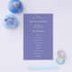 Simple Text Blue Wedding Program. A great value PAPER (not card) alternative WITHOUT ENVELOPES and at a budget price. A simple, stylish typographical design with black text on periwinkle blue violet for your wedding programs which is fully customisable. The text, which you can easily personalise, is centred on both sides. You can change the text and background colours if you wish to match your wedding colour theme via the Customise Further option as well as other editing you may require. If you need any assistance with your editing of this design, please message me.
