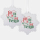 This paper ornament is shown with a festive Christmas holiday Joy to the world print design.