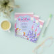 Unicorn Magical Third Birthday Party Invitation. A great value PAPER (not card) alternative WITHOUT ENVELOPES at SMALLER size 4.5” x 5.6” and at a budget price. (Standard A6 envelopes are the nearest size to fit). A mystical cute unicorn design for your daughter’s 3rd birthday, with typography Magical in a set style in shades of pink and lilac with a pattern of stars and a unicorn symbol on the C. The rest of the text you can easily personalise. The text sit’s upon a blue cloud shape and in the background a stripe pattern in lilac, blues and shades of pink with gold confetti and a coordinating lilac background on the back.