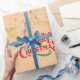 Ce papier cadeau de qualité supérieure transformera vos cadeaux en véritables œuvres d'art sous le sapin. Il est orné de notre motif classique et raffiné : la scène du Père Noël et de ses rennes en or scintillant au-dessus de l'inscription "MERRY CHRISTMAS" en rouge et vert traditionnel.