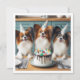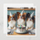 A funny and sweet illustration of papillons with a birthday cake and wearing party hats. This is the perfect card for papillons lovers and small dog lovers,