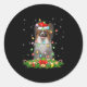 Papillon Dog Christmas Lights Funny Santa Hat Xmas Classic Round Sticker
