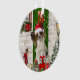 Papillon Dog Christmas sitting outside decorated home with Christmas wreath, Christmas tree is a perfect Christmas gift idea for dog lovers.