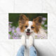 A White and Red Papillon dog sitting in a meadow surrounded by Cuckooflower. The Papillon is an alert, friendly and very smart toy breed. A little lovely doggy photo taken by Katho Menden, this door mat Welcome is an enchanting special gift idea for dog lovers.