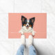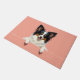 The soft pastel coral background adds a warm and cheerful touch, perfect for welcoming entryways. Designed with extra space at the top and bottom, it allows easy personalization with names, welcome messages, or custom text—making it ideal for unique dog-themed doormats and thoughtful gifts.