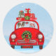 Papillon Dog In Car With Santa Claus Classic Round Sticker