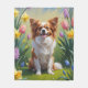 Papillon Dog Spring Flowers Painting Fleece Blanket