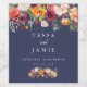 Personalised wine labels are perfect for adding a unique custom touch to your table wine, wedding favours or welcome gifts. Elegant floral design features your names, wedding date and wine varietal or custom message in elegant lettering, accented with a gorgeous palette of burgundy, gold, coral, blush and leafy greens with a navy blue background. For further customisation, please click the "customise further" link and use our design tool to modify this template.