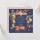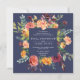Wedding invitation matches our Paprika Burgundy Floral collection, featuring wedding details nestled inside a square surrounded by a gorgeous palette of burgundy, gold, coral, blush and leafy greens on a navy blue background. All text is fully customisable.