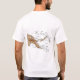 An editable title and slogan accompanies the white stars and yellow bird of paradise over black and red triangles of the Papuan flag on the front of this t-shirt. The back displays a detailed map of Papua New Guinea.
